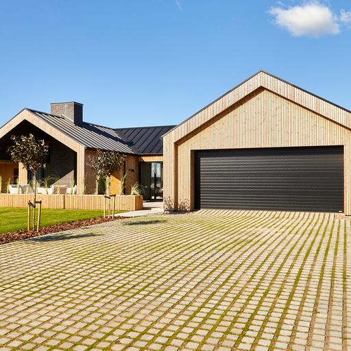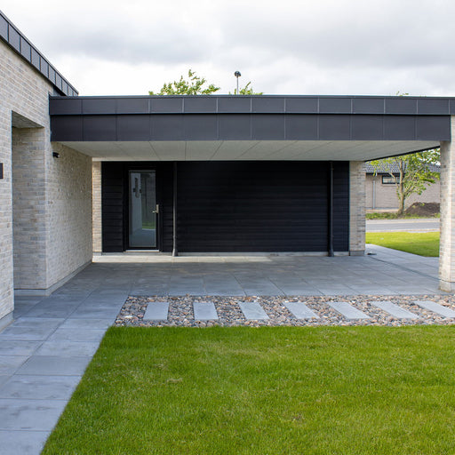 • Indkørsel: Brug fx brosten for et rustikt look eller betonfliser og græsarmering for et mere enkelt design.