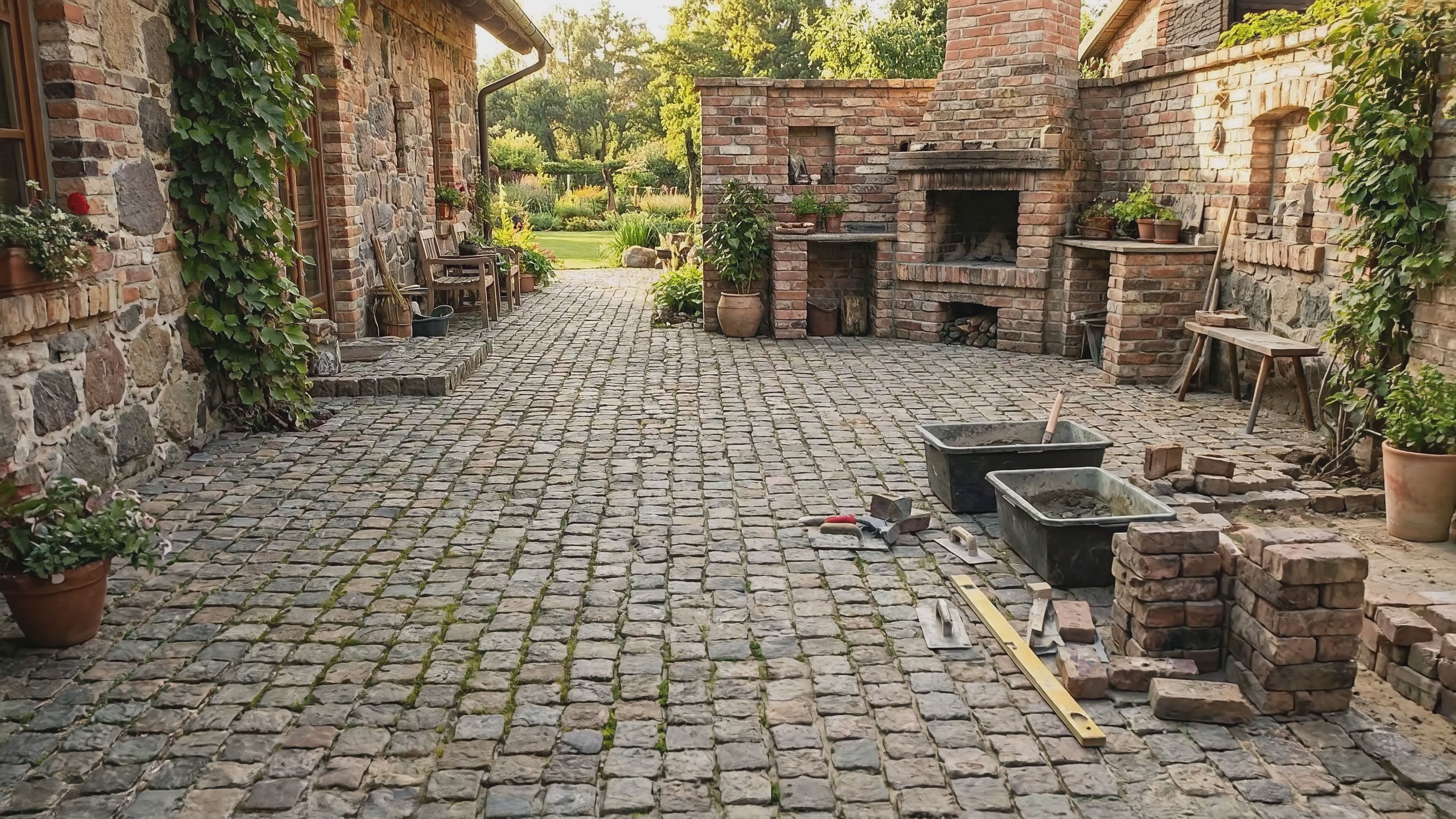 • Sættelag: Stenene sættes i brolæggergrus (afretningssand). Det er her, du justerer højden på den enkelte sten med din brolæggerhammer.