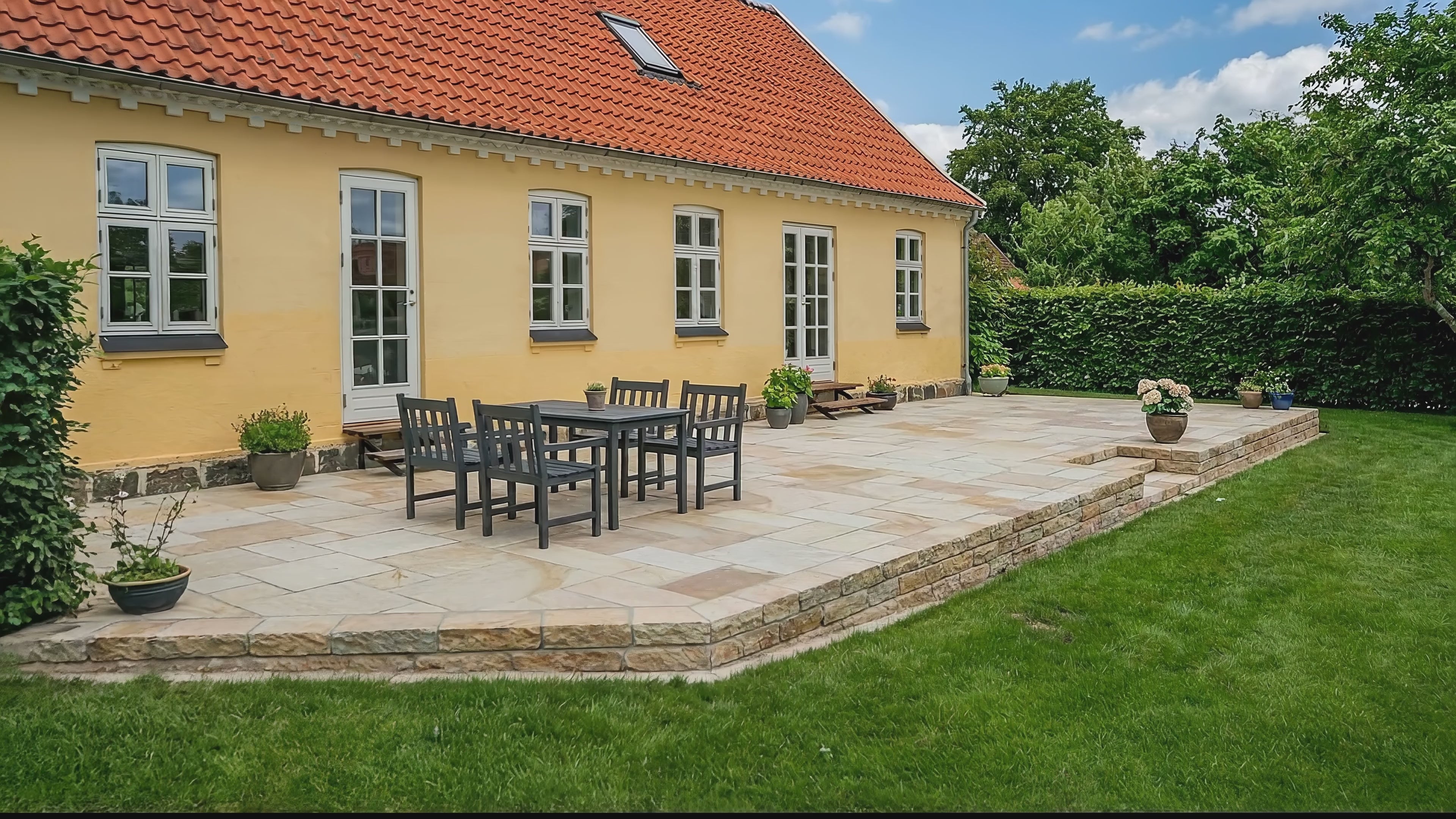 Hos Drømmehave ved vi, at holdbarhed starter med det rette materialevalg. Derfor tilbyder vi denne sandsten i to tykkelser: