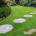 Brolæggerens Tip For et professionelt finish: Når du bruger dem som trædesten i græs, så læg dem, så overkanten flugter præcis med græshøjden. Så kan du køre plæneklipperen henover uden at ramme kanten.