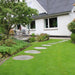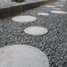 Runde former bløder havens udtryk op. Disse fliser er særligt populære som "stepping stones" (trædesten), hvor de lægges med en skridtlængdes afstand. Det fungerer fantastisk i en græsplæne, men giver et endnu mere eksklusivt udtryk, hvis de omkranses af sorte granitskærver. Kontrasten mellem den lyse grå beton og den mørke natursten er en tidløs klassiker i dansk havedesign.