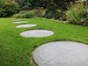 Store runde betonfliser med en diameter på 80 cm. Disse fliser er ideelle til at bryde de skarpe linjer i haven og fungerer perfekt som stabile trædesten i græsplænen eller i et bed med skærver.