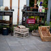 Med en tykkelse på 6 cm er denne flise dimensioneret til at kunne bære personbiler, forudsat at underlaget er opbygget korrekt. Det gør den ideel til at skabe en sammenhængende stil fra indkørslen og helt om i baghaven på terrassen.