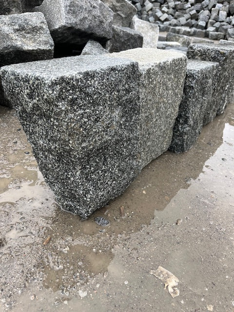 - Massiva granitblock (vanligtvis 100 × 20 × 10 cm) kluvna eller finskurna, installerade som stomme för terrasser, uppfarter och gångvägar.
