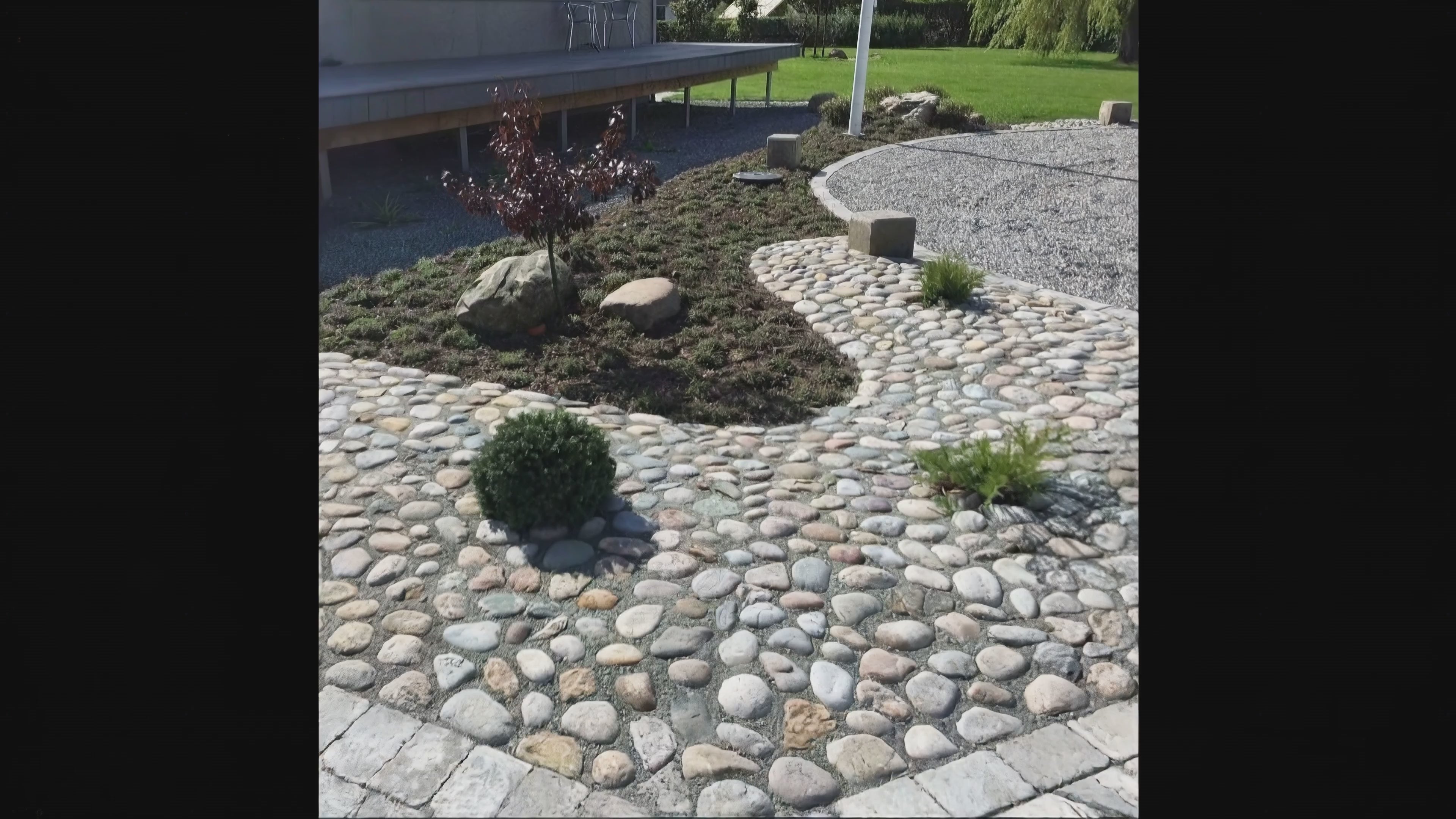 Om stenarna helt enkelt ska användas som dekoration kan de med fördel läggas på den långa ytan och därmed få dem att nå flera kvadratmeter, snarare än knölbeläggningen, som visas nedan.